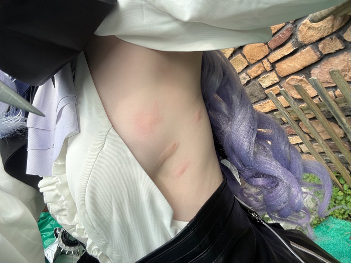 【画像】コスプレイヤー、ノーブラおっぱいの横乳を蚊に刺されてしまうwwww