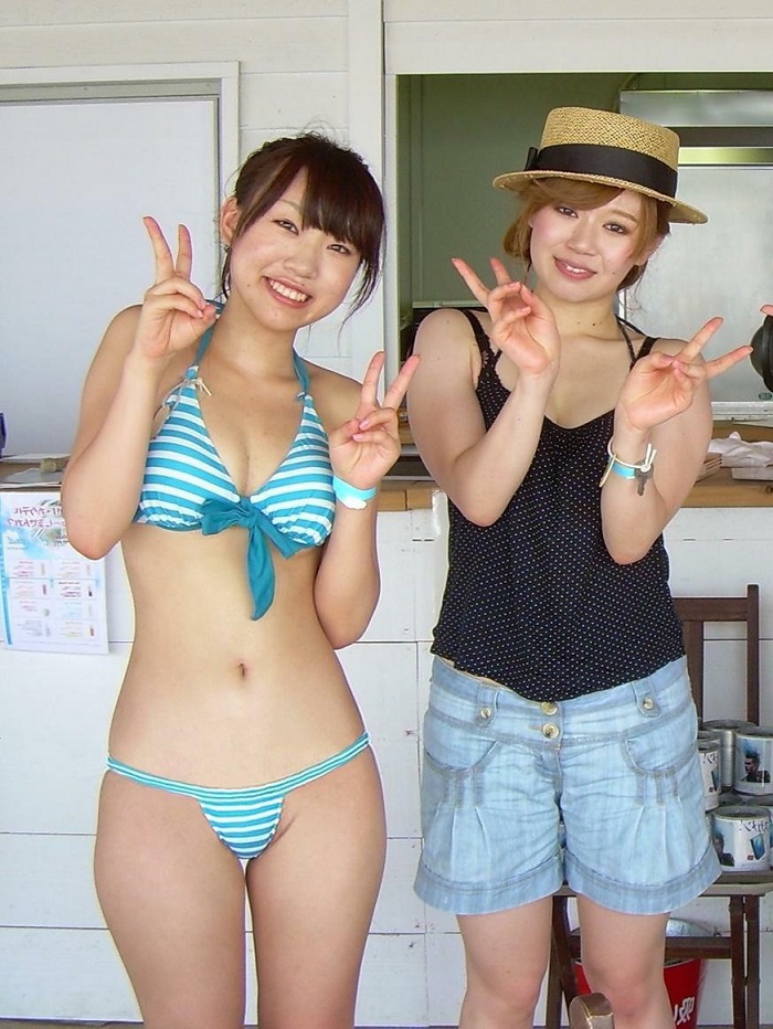 【画像】海にいるドスケベ娘、アソコ見えそうなギリギリ水着を着てしまうwwwwwww
