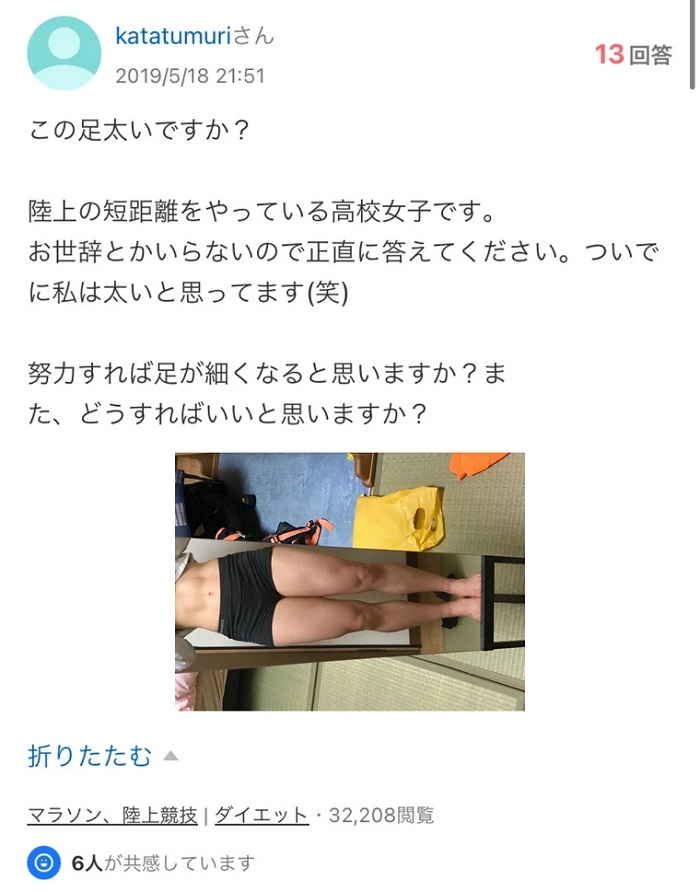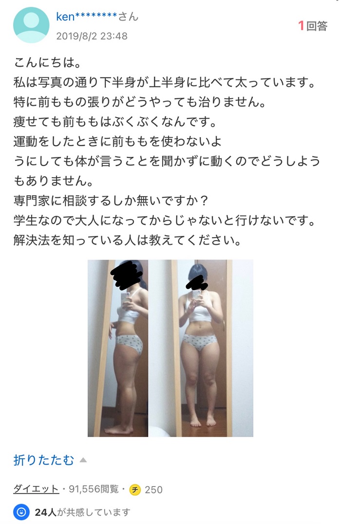 【画像】JK「脚だけ痩せなくて困ってます」w