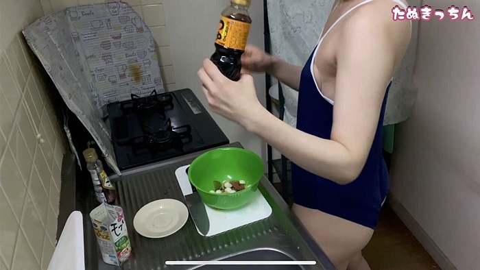 【画像】まんさん、スク水着て料理を作ってしまうwwww