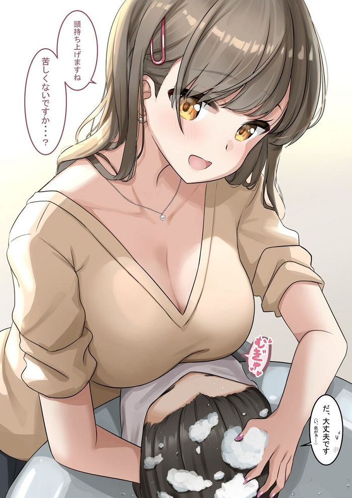 【画像】美容師さん、シャンプー中におっぱいを押し付けてしまうww