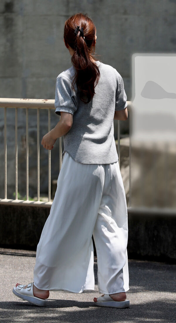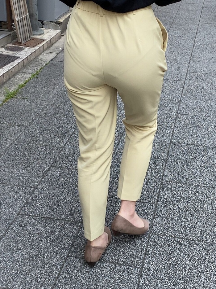 【画像】40過ぎてピチピチのスボン履いてパンツの線丸見えのお姉さんwwww