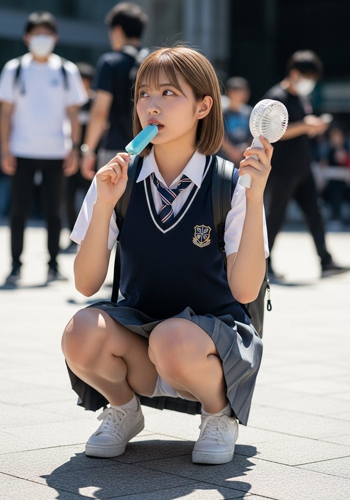 必死にスカート折ったんかなw