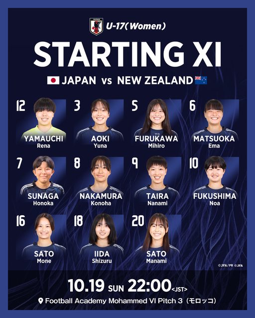 世界を戦う選手たちへ応援をよろしくお願いします📣🇯🇵#U17WWC #U17日本女子代表 pic.twitter.com/yhVq1h5h32— JFAなでしこサッカー (@jfa_nadeshiko) October 18, 2025