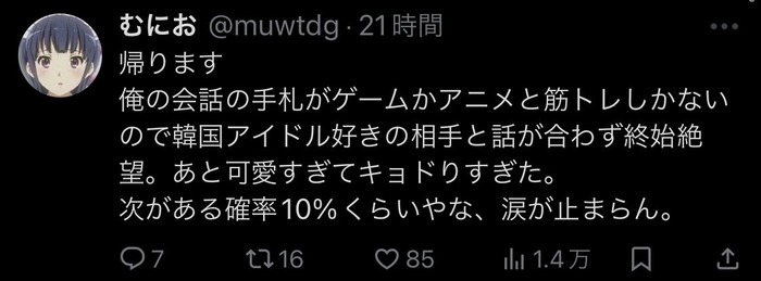 マジレスすると会える時点でだいぶ上澄みなんだよなあ